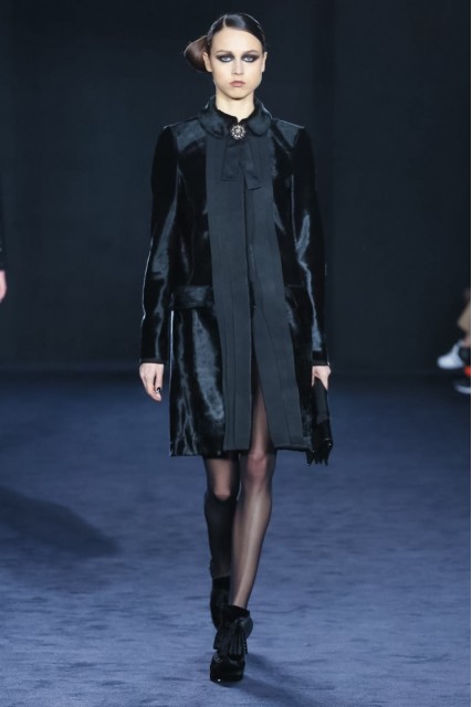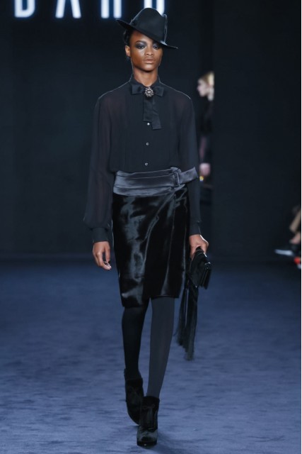 The colour palette played testament to the brilliant sunsets of winter, with burnt orange, black and bright yelllow appearing throughout in a range of different shades and textures. Lightweight chiffons and georgettes created fluid shapes and slick tailoring made for sharp silhouettes. Victorian-style patterns and ruffled necklines offered a nod to the 18th century trend of spring.